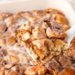 How to store: Store your Cinnamon Roll Casserole in an airtight container or cover with plastic wrap or aluminum foil and store in the refrigerator for up to 3 days.